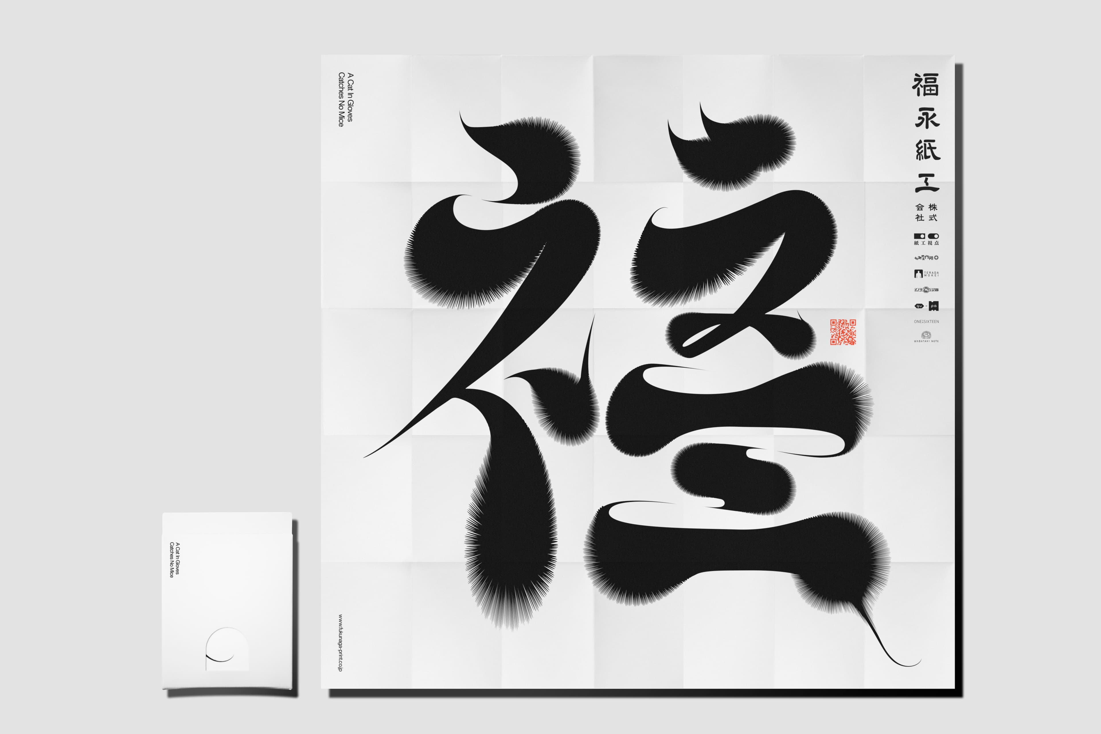 窓からヒョロっと覗く尻尾に誘われて紙を広げると、大きな「福」(実はネズミとも読める)タイポグラフィーが現れます。